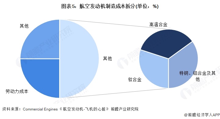 航空发动机制造成本(不含控制系统)主要由两部分组成◈✿★:原材料成本◈✿★、劳动力成本◈✿★,分别占比在40%-60%◈✿★,25%-35%◈✿★。发动机使用的原材料主要是高温合金◈✿★、钛合金◈✿★,两者价值占比分别在35%◈✿★、30%左右◈✿★。高温合金涉及的主要材料是镍◈✿★、钴金属◈✿★,钛合金主要是钛◈✿★。发动机应用的其他材料还包括铝合金◈✿★、钢等◈✿★。